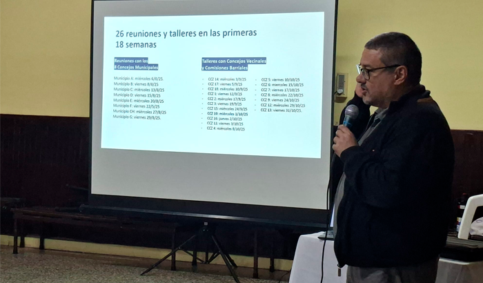 La propuesta, denominada “Diálogo Barrio a Barrio”, se planificó como modalidad taller. La primera instancia se realizó el miércoles 1 de octubre a las 19 h. en el Centro Comunal Zonal 10 (Av. José Belloni 4441 esq. Capitán Tula). En el caso de la zona 11 se desarrolló el viernes 3 de octubre a las 19:30 h. en el salón de la Comisión Fomento Las Acacias (Bagé 3790 esq. Av. Gral. Flores).